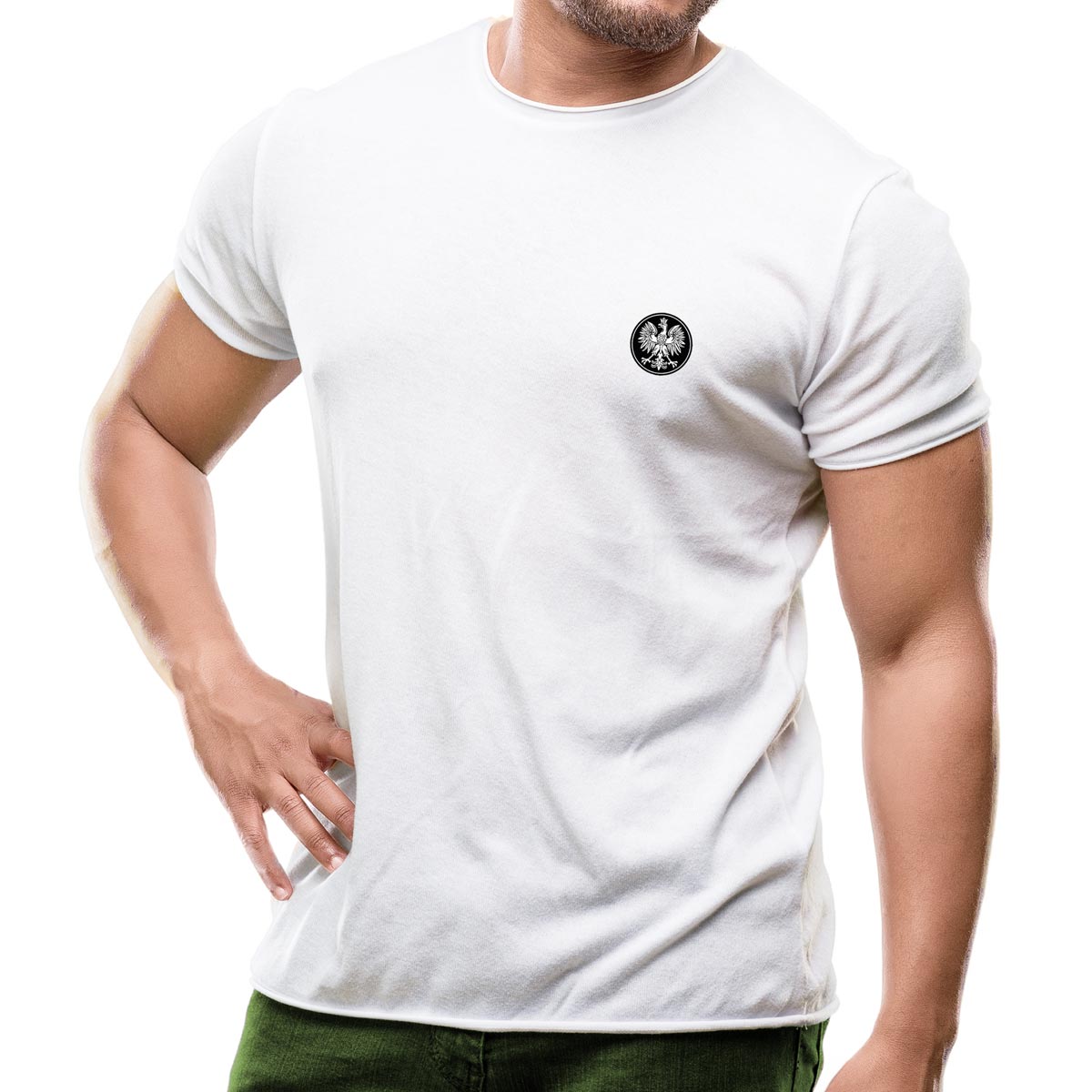 ✅ Design : Koszulki patriotyczne męskie z flagą Polski na piersi, znakiem Polski Walczącej oraz orłem Polski na ramieniu.